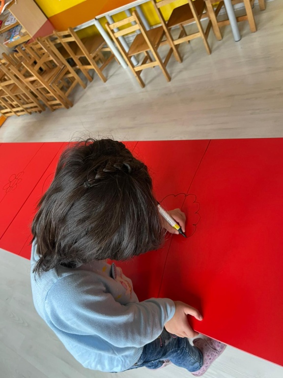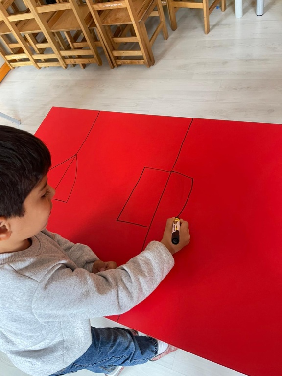 5/B sınıfında masaya çizilen resimlerin yarısının çocuklar tarafından tamamlanması istendi. Yapılan bu simetri etkinliği ile öğrencilerin motor becerilerini geliştirmek ve uzamsal düşünmeye yönlendirmek hedeflenmiştir.